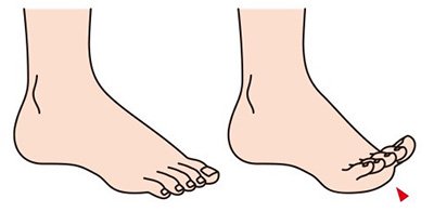 重度になると、40度以上曲がってしまい、親指が人差し指(第二趾)に重なることもあります。