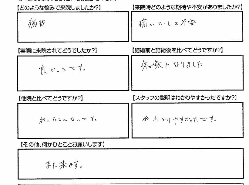 腰痛が早くなおって助かりました!