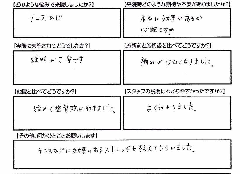 テニス肘の痛みが少なくなりました
