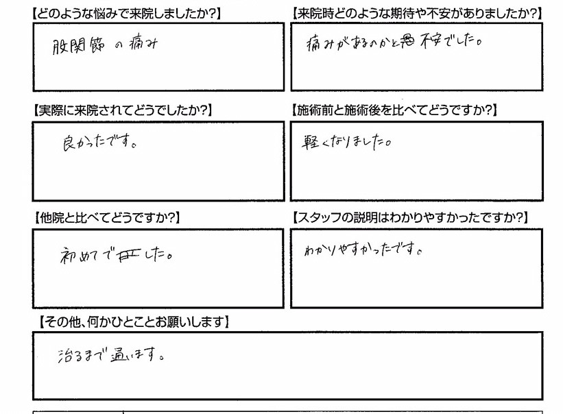 股関節の痛みで来店しました