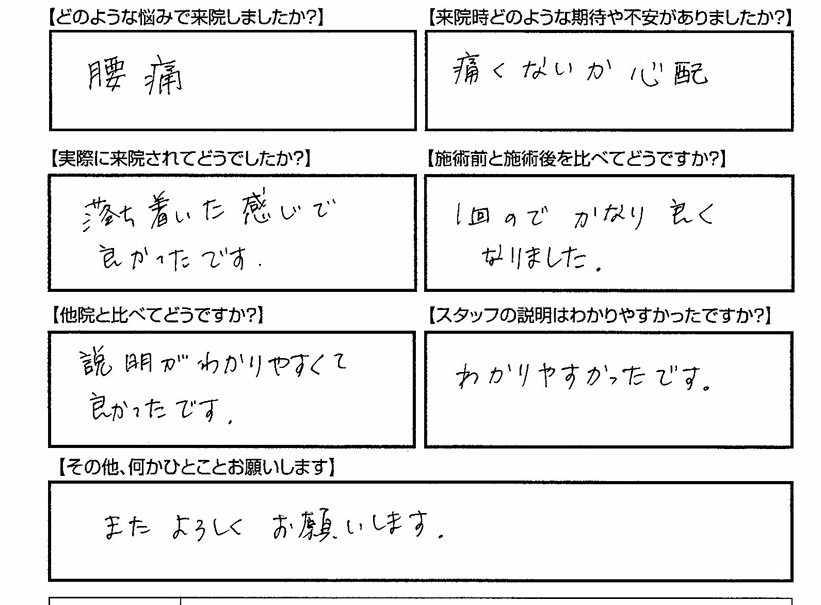 1回でギックリ腰が良くなり、歩けるようになりました!